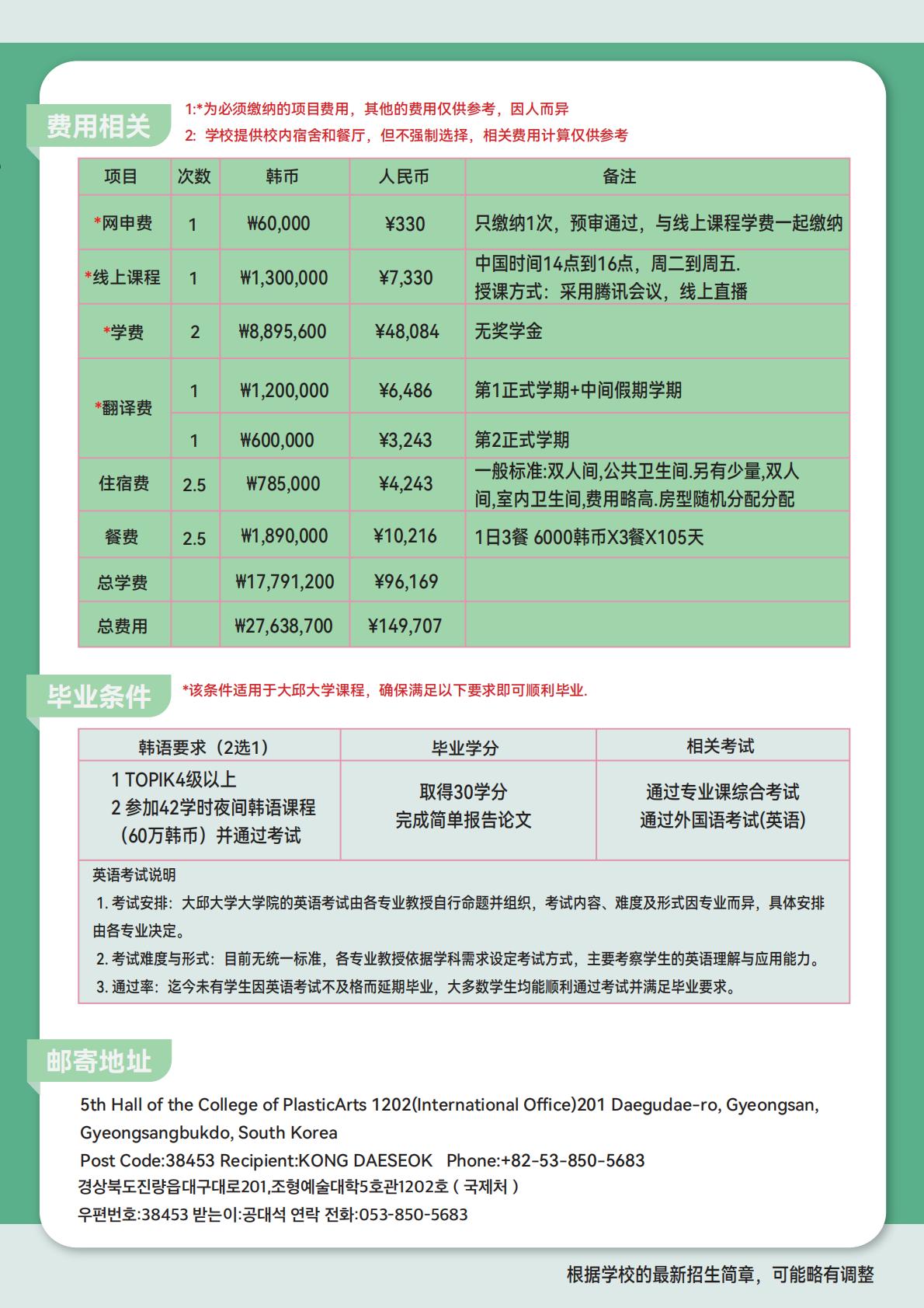 🎓 大邱大学 双语授课 1年制硕士课程 招生说明1️⃣ 学历要求 • 中国本科毕业学生须具备 毕业证...
