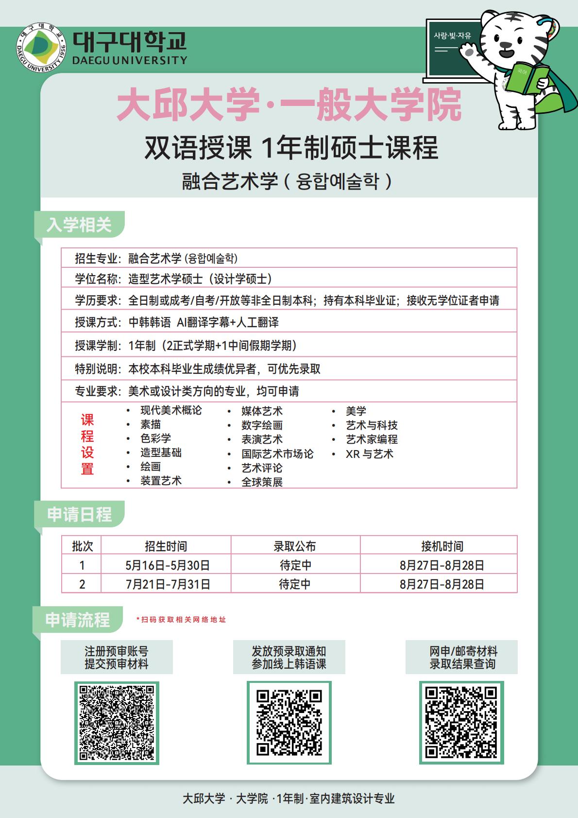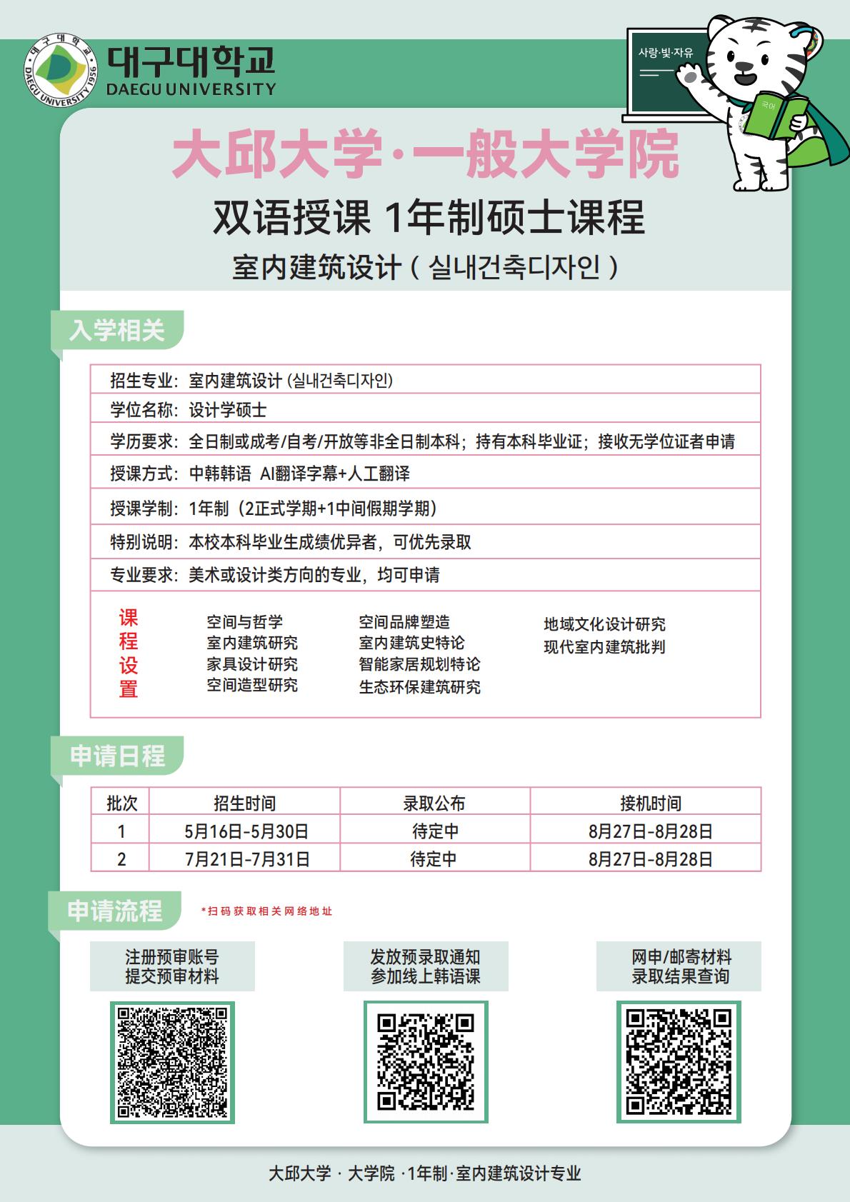 大邱大学1年制设计学硕士:融合艺术设计,室内建筑设计